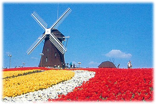 風車に大芝生に、バラ園。