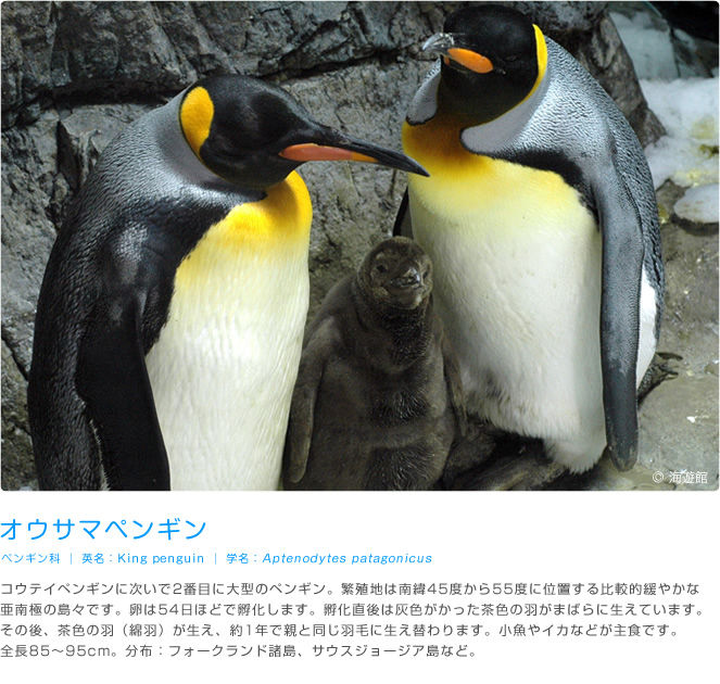 トンネル型の水槽を通って、最上階の「日本の森」へ。そこから14の展示水槽を眺めながら地上、海底へと下っていきます。水槽は「太平洋」「南極大陸」などに分かれていて、環太平洋を巡っている気分に。