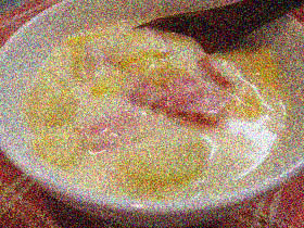 牛乳に小麦粉を入れて煮詰めると、小麦粉がダマダマになる。まあ、この過程も一度経験しておいて、やつらがどれぐらい手強いのかを知っておくのもよいでしょうネ。フフフ