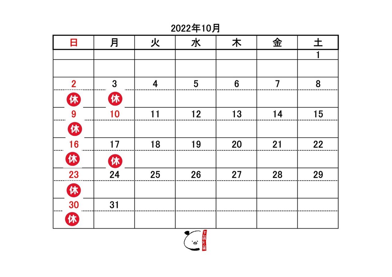 今月のおやすみ店休情報です。